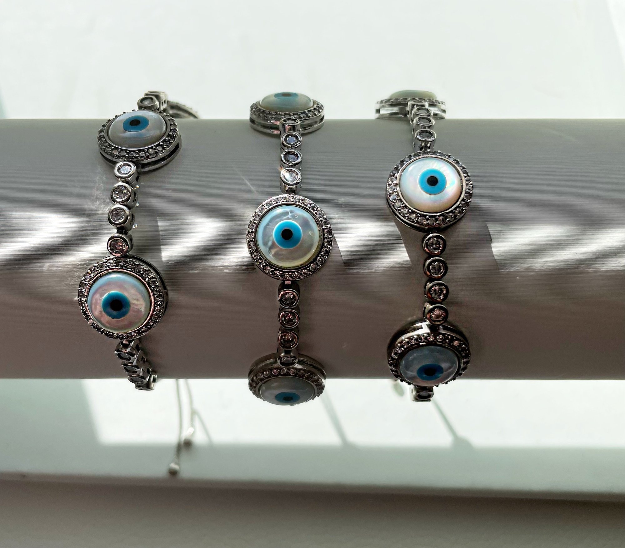 Silver opal evil eye bracelet