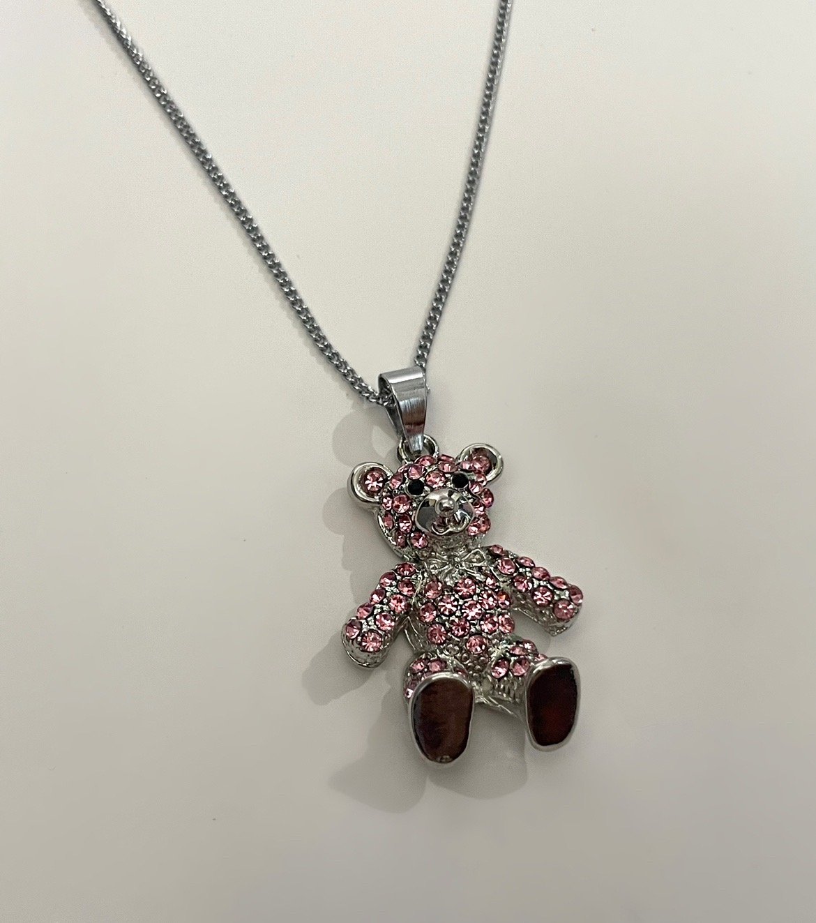Tarnish resistant 18' necklace with Pink Teddy bear